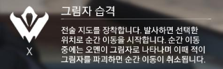 장착형. 사용하면 표시하는 위치로 순간 이동한다. 리퍼의 스킬과 유사.