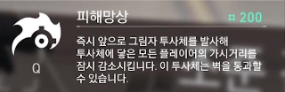 즉발형. 명중한 모든 적의 시야를 차단하는 그림자를 날린다. 벽 관통 가능.