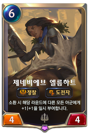 정찰과 도전자 효과, 아군에게 +1/+1이라는 효과는 컨셉과 일치한다.
