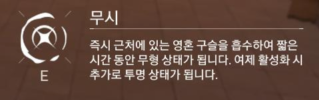 아래 움짤에선 궁극기 사용 후 '무시'를 사용하면 투명해지는 모습을 볼 수 있다.