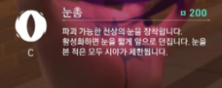 장착형. 발동 개념은 피닉스의 섬광 효과처럼 스킬을 보는 유저의 시야를 제한 시킴.